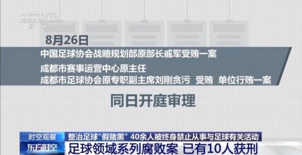 足球领域系列腐败案 已有10人获刑