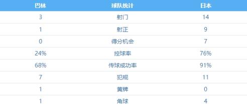 结果巴林在对日本的比赛中完成了3次射门,确实比国足多了2次。传中方面,国足和巴林都是完成了5次。