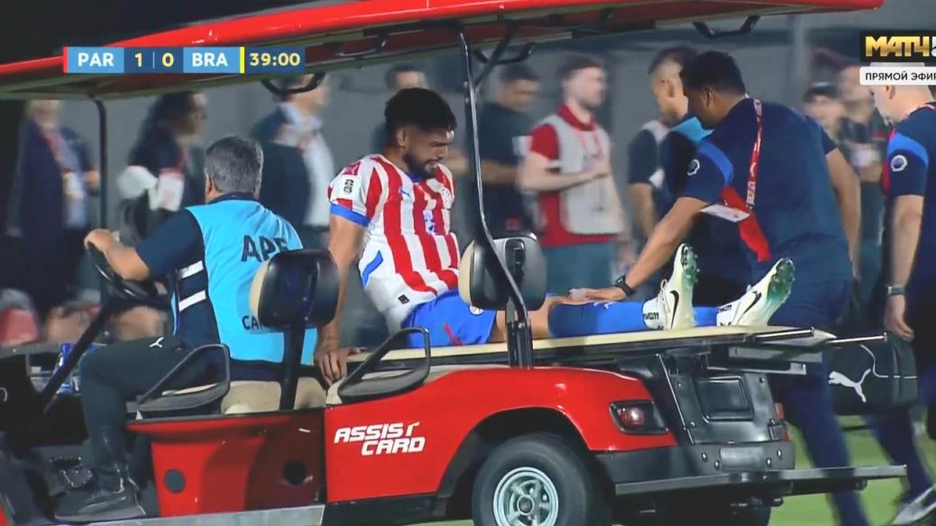 09月11日讯 南美世预赛巴拉圭vs巴西,上半场巴拉圭后卫、效力于赫塔费的阿德雷德与恩德里克争顶后,受伤无法坚持比赛,被医疗车运送下场。
